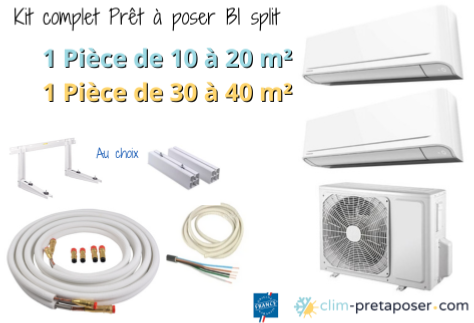 Pack complet clim bi split prêt à poser 1 Pièce de 10 à 20 m² et de 30 à 40 m²