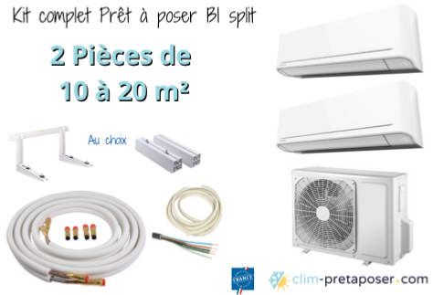 Pack complet clim bi split prêt à poser 2 Pièces de 10 à 20 m²