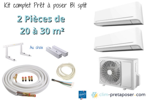 Pack complet clim bi split prêt à poser 2 Pièces de 20 à 30 m²