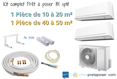 Pack complet clim bi split prêt à poser 1 Pièce de 10 à 20 m² et de 40 à 50 m²