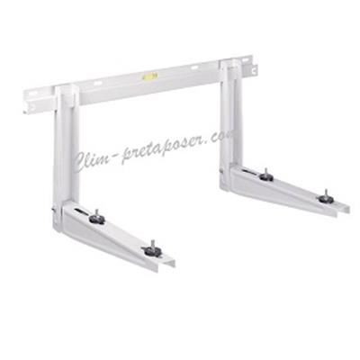 acier blanc laqué, pour fixation au mur, supportant une charge totale par bras de 70 kilos. Longueur des bras 420 mm largeur 800 mm, pour tous types de climatiseurs.